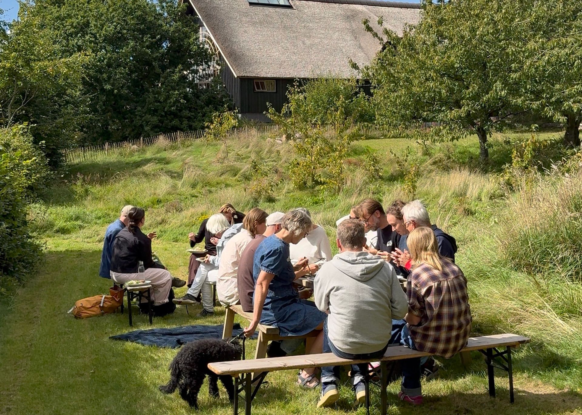 Et større britisk studie fra Oxford Economics [i samarbejde med National Centre for Social Research](https://www.theguardian.com/society/2018/may/23/the-friend-effect-why-the-secret-of-health-and-happiness-is-surprisingly-simple) har undersøgt, hvad der får mennesker til at trives. Her er fællesspisning en af de faktorer, der går igen. Studiet viser, at mennesker, der ofte spiser alene, i højere grad rapporterer om helbredsproblemer end dem, der spiser sammen med andre. Over en tredjedel af dem med helbredsudfordringer spiser ofte alene, mens andelen er lavere blandt dem, der sjældent eller aldrig gør det. Sammenhængen er ikke entydig. Men retningen er klar: sociale relationer spiller en rolle for vores trivsel – også i noget så hverdagsnært som et måltid. **Mere end mad** I bofællesskaber er fællesspisning derfor sjældent kun et praktisk greb. Det er et omdrejningspunkt i hverdagen. Et sted, hvor relationer opstår og vedligeholdes – og hvor man løbende får en fornemmelse af, hvordan andre har det. Det er også her, fællesskabet bliver konkret. Ikke som en idé, men som noget, der sker – igen og igen. Og måske er det netop derfor, fællesspisning bliver ved med at være centralt: Fordi det i al sin enkelhed gør noget ved, hvordan vi har det – sammen.