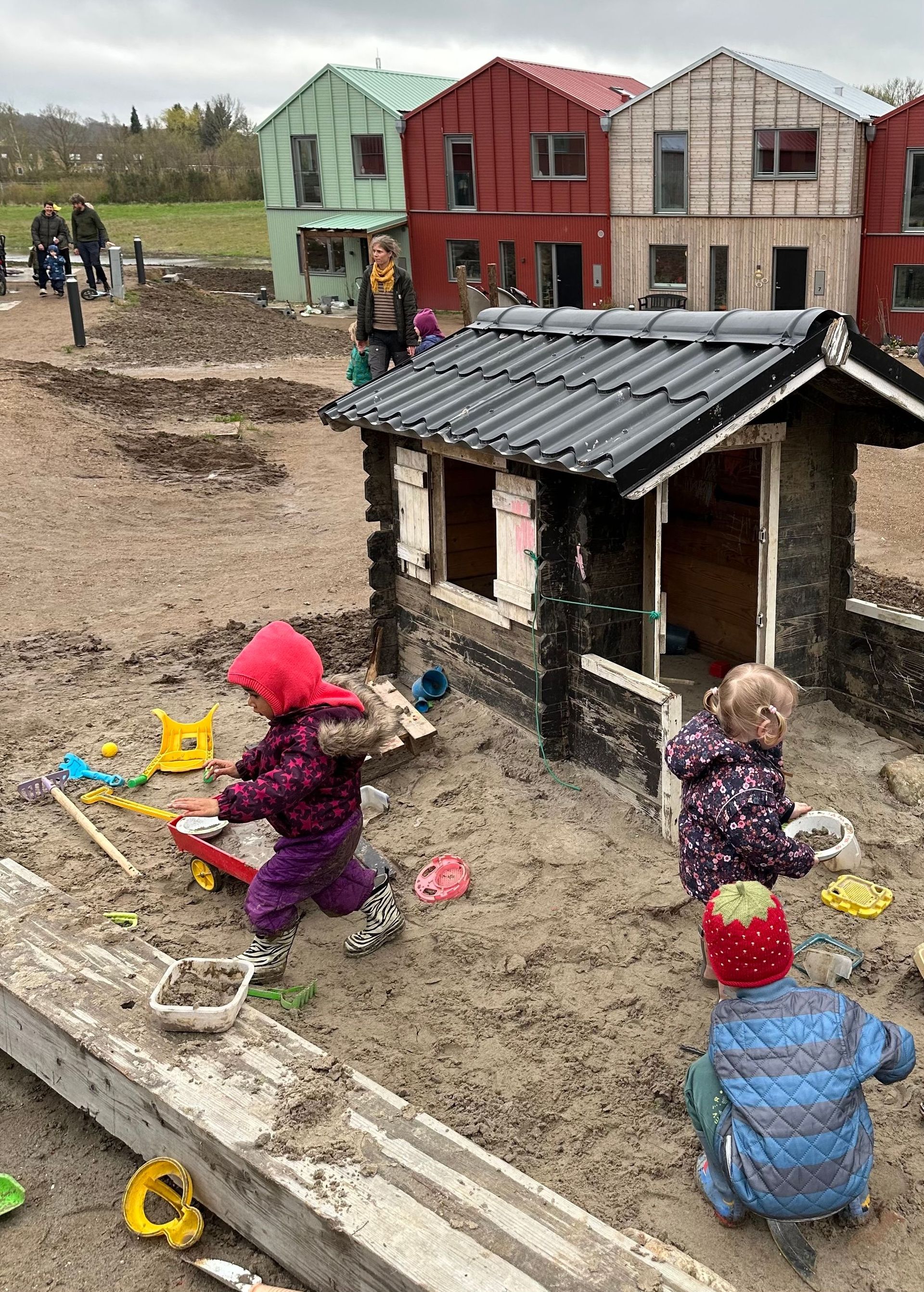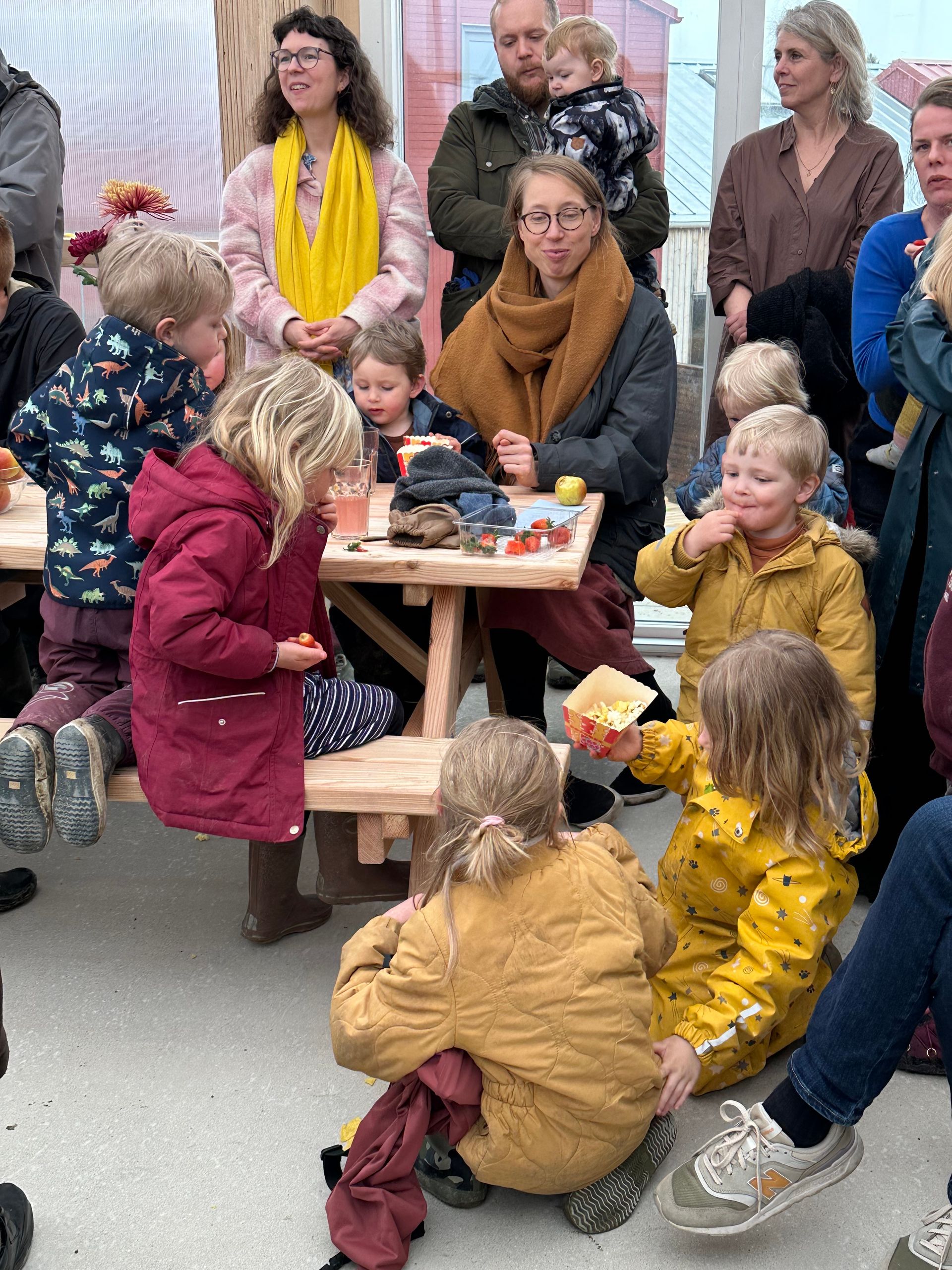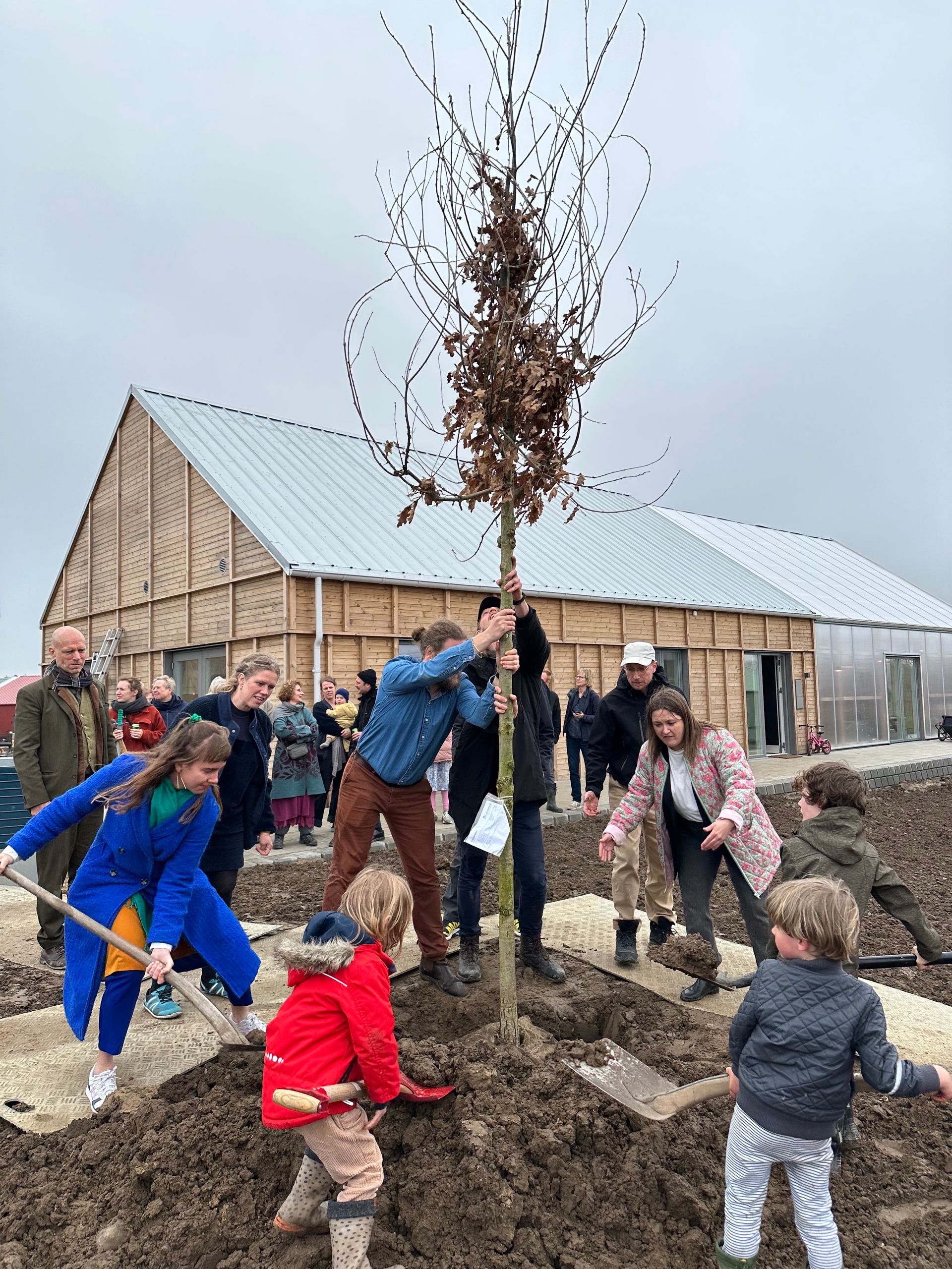 Det blev alt sammen fejret til den store indflytterfest, hvor også beboerne Bjørn Førde og forperson i Fridlev Rasmus Pontoppidan talte. Bagefter var der folkedans og musik og sang guidet af musiker Søren Gustav, skattejagt for børnene og rundvisning i enkelte, åbne boliger. Vi afsluttede dagen med at plante et egetræ ude foran Laden. Under træet blev Fridlevs tidskapsel gravet ned. I tidskapslen er drømme skrevet på små kort, som alle beboere lavede ved en ceremoni, da de fik nøgler til deres huse i sensommeren og efteråret 2023. Nu ligger drømmene der i jorden under egetræet som et symbolsk psykologisk fundament for hele landsbyen. Et minde om, at vi kan realisere drømme sammen. Og vi kan blive ved med det, når jorden er gødet af drømme. Det kan være besværligt undervejs, men det er også fedt og stort, når det hele lykkes. Tillykke til os alle! Og by the way: Læs også interview med beboer Søren Ganer, der fortæller om de første måneder i det nye fællesskab Fridlev. ["Det er federe end jeg havde turde håbe på."](https://almenr.dk/post/det-er-federe-end-jeg-turde-habe-pa)