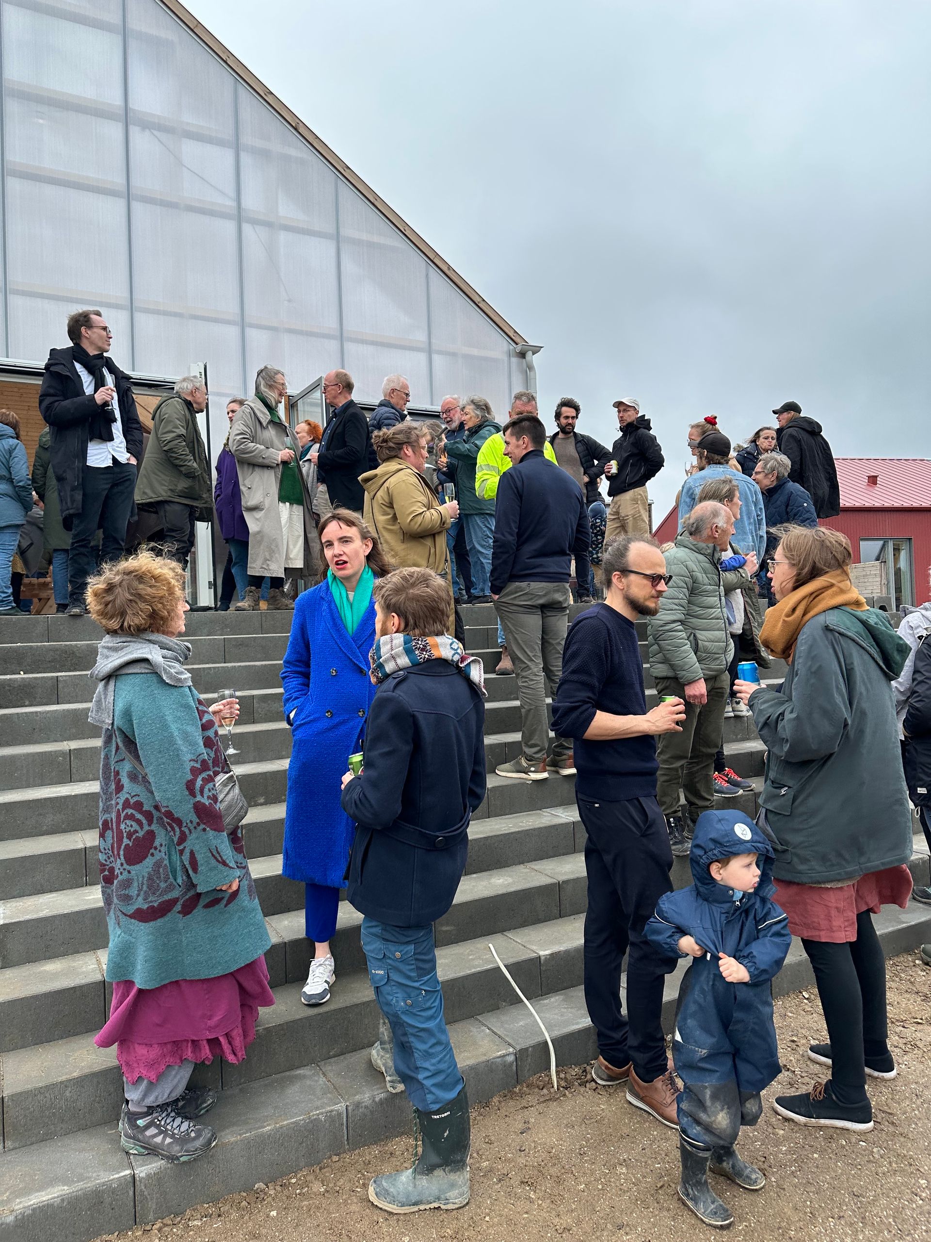 Tæt på 200 børn og voksne var dukket op denne fredag d. 12. april for sammen at fejre og hylde Fridlev. Beboere, gæster udefra og mange samarbejdspartnere - så som Enemærke og Petersen A/S, Loop Architects og Sparekassen Sjælland-Fyn A/S - var med til det store tre timers eftermiddagsprogram. Viceborgmester i Lejre Kommune Grethe Nørtoft Saabye var også med, og i sin tale roste hun Fridlev med ordene "Tillykke - det er godt gået!" Ja, det er faktisk godt gået! Af os alle sammen! Fridlev har været flere år undervejs, men står nu her med 42 arkitekttegnede, farverige, lavenergihuse, der er inspireret af den norske Tún-arkitektur, bygget i sunde materialer og placeret ind i et kuperet terræn - smukt placeret direkte ud til marker og en idyllisk, skovagtig sø. Fridlev er bygget op med tre klynger med hvert sit fælleshus - med fælles faciliteter som gæsteværelse, kontorer og industrikøkkener - samt et orangeri og en stor fælles lade, som også rummer musikværksted og gymnastiksal/motionsrum.